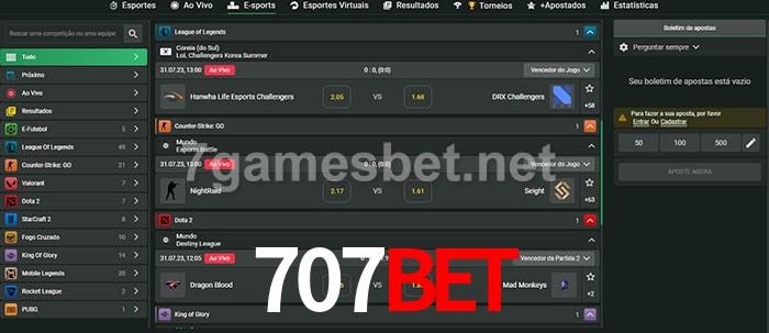 A aposta 707bet oferece aos jogadores a experiência mais conveniente de apostas em eSports!